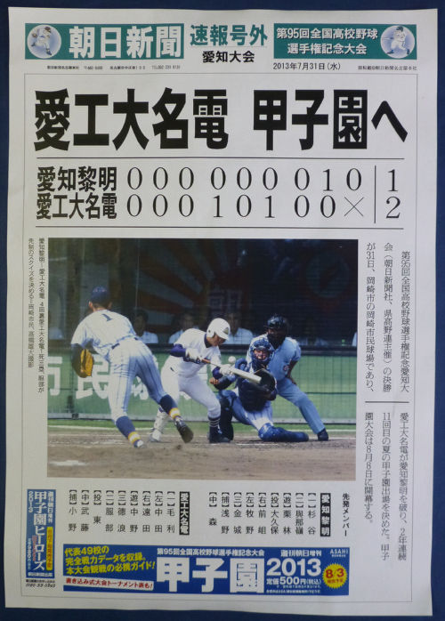 朝日新聞高校野球号外 一病息災 日本酒が旨い