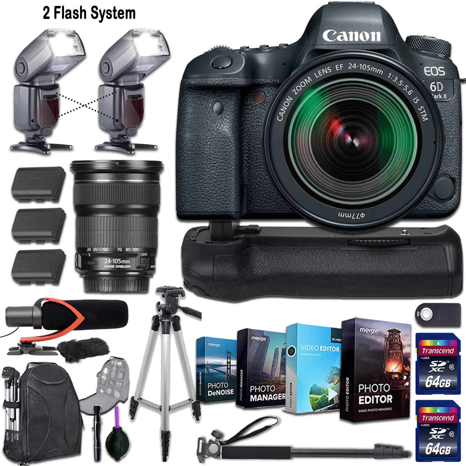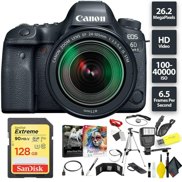 Amazon Com Canon Eos 6d Mark Ii Dslr Camera And Canon Ef 24 105mm F 3 5 5 6 Is Stm Lens 2 Flash System With Deluxe Accessory Kit 4 Pack Photo Video Editing Software Pro Microphone W Windshield